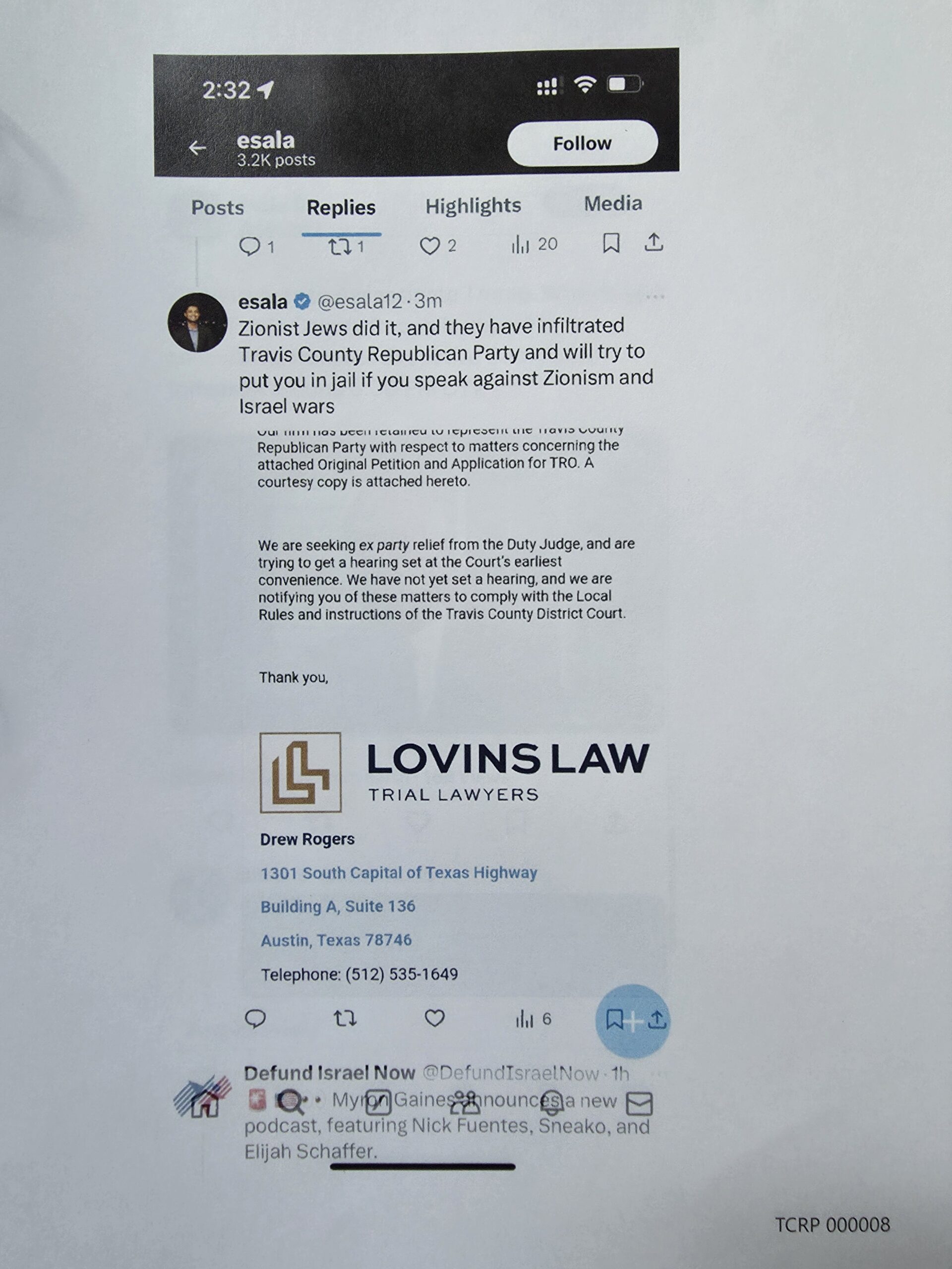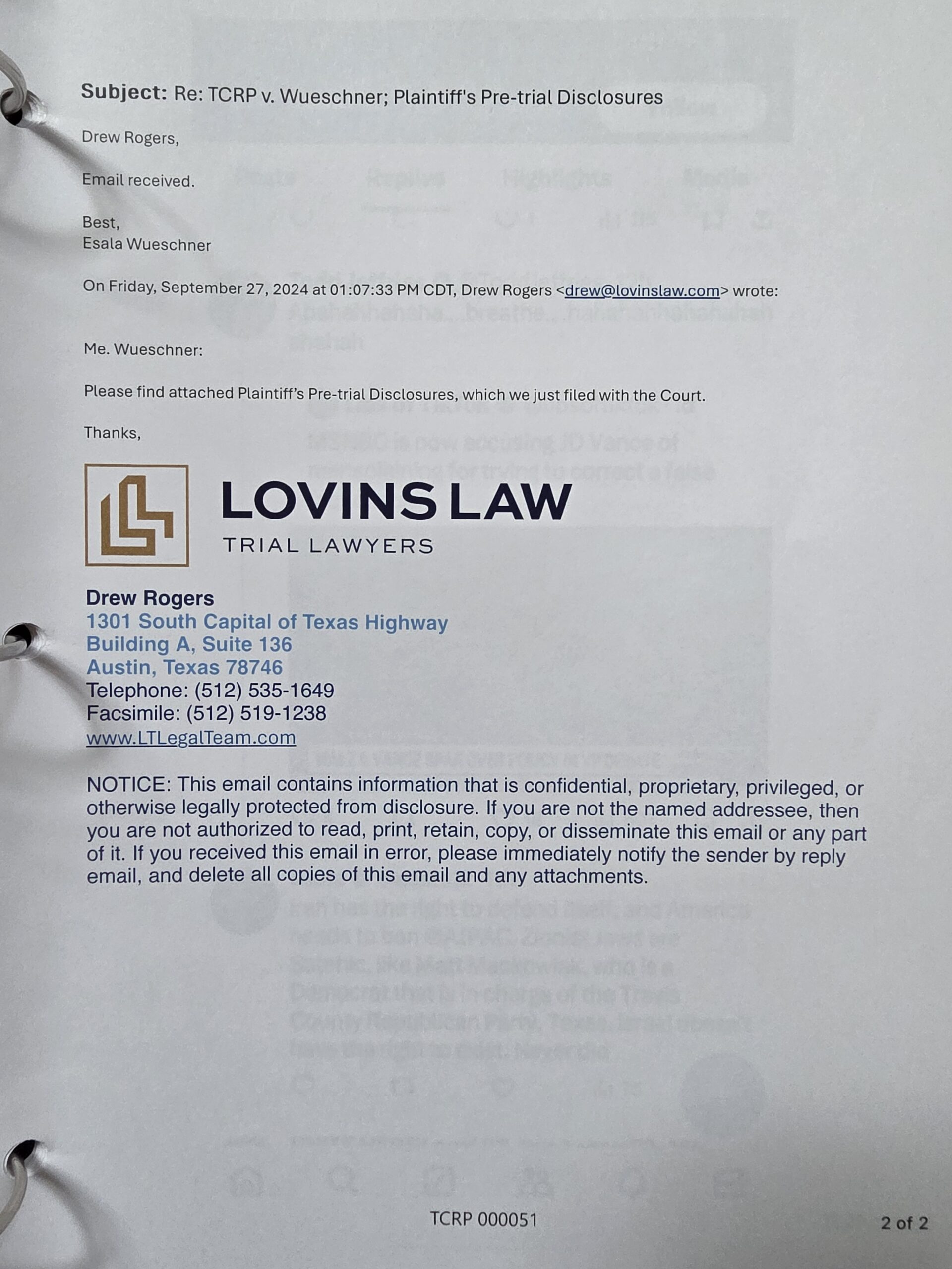 Travis County Republican Party – Texas Vs. Esala Wueschner